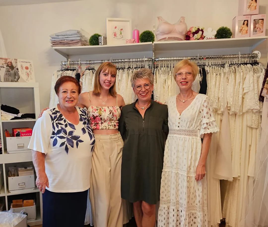 Von rechts nach links: die beiden Junior-Chefinnen, unser Nachwuchs-Kücken in der 3. Generation sowie unsere verdiente Senior-Chefin. Kaufe nachhaltig und unterstütze Familienbetriebe vor Ort.