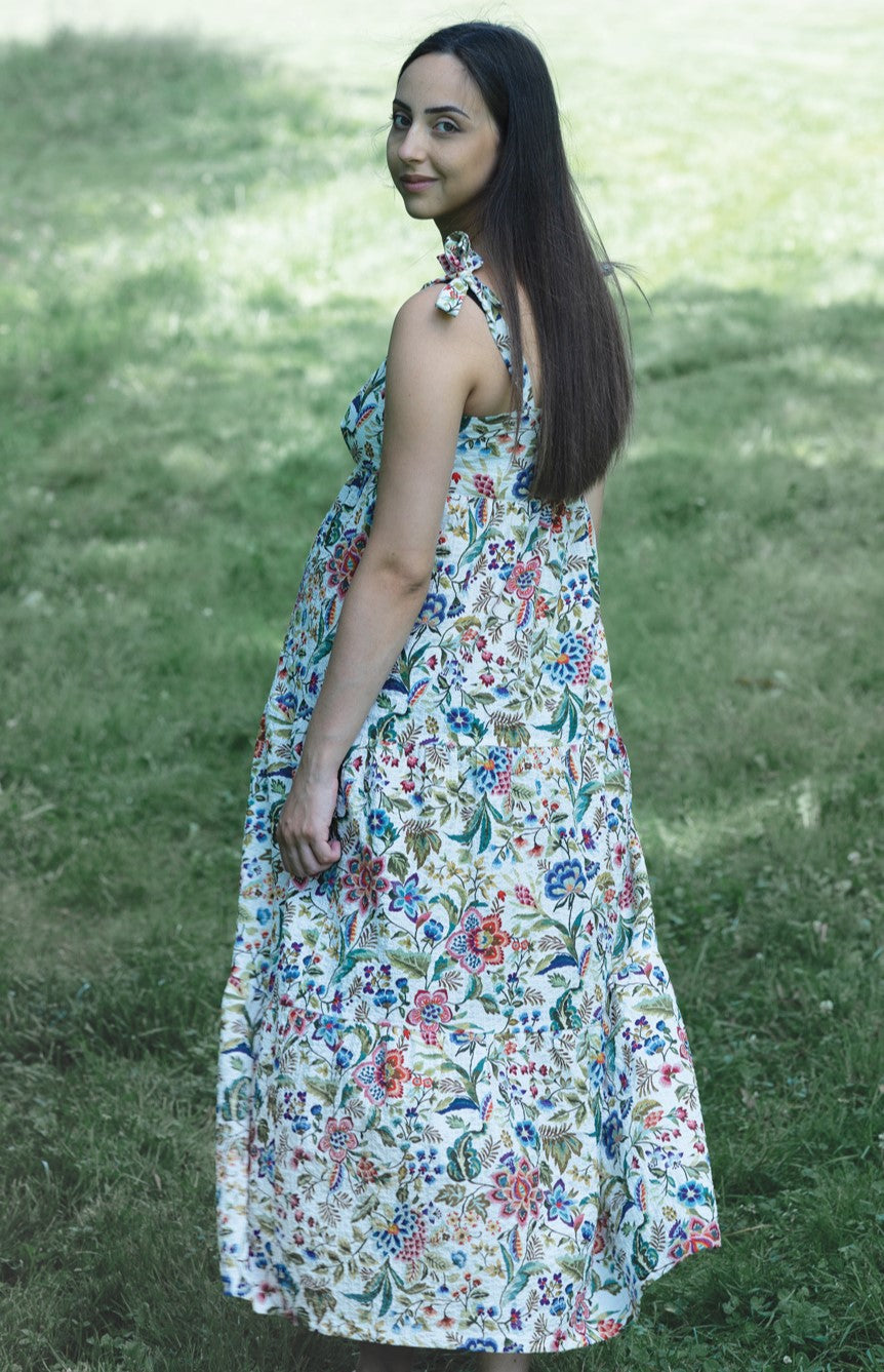 Das Umstandskleid BALI mit Stillöffnung ist das perfekte Sommerkleid für werdende Mütter. Mit schmalen Trägern und einer praktischen Bindefunktion kann man das Kleid perfekt anpasse. Auch nach der Geburt kann es dank der Stillöffnung weiterhin getragen werden. Ein Muss für alle modebewussten Mamas!