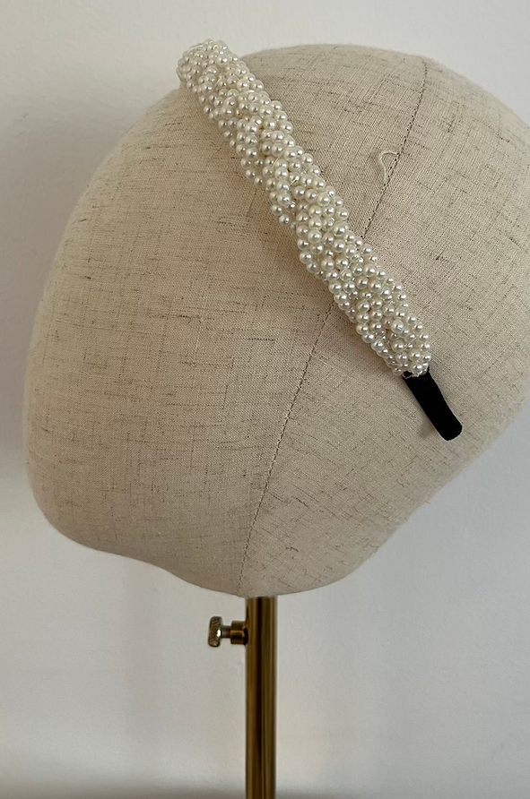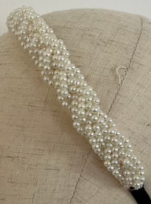 zu einem besonderen Haarreif geflochtene Perlenstränge, 2 cm breit, 1 cm hoch