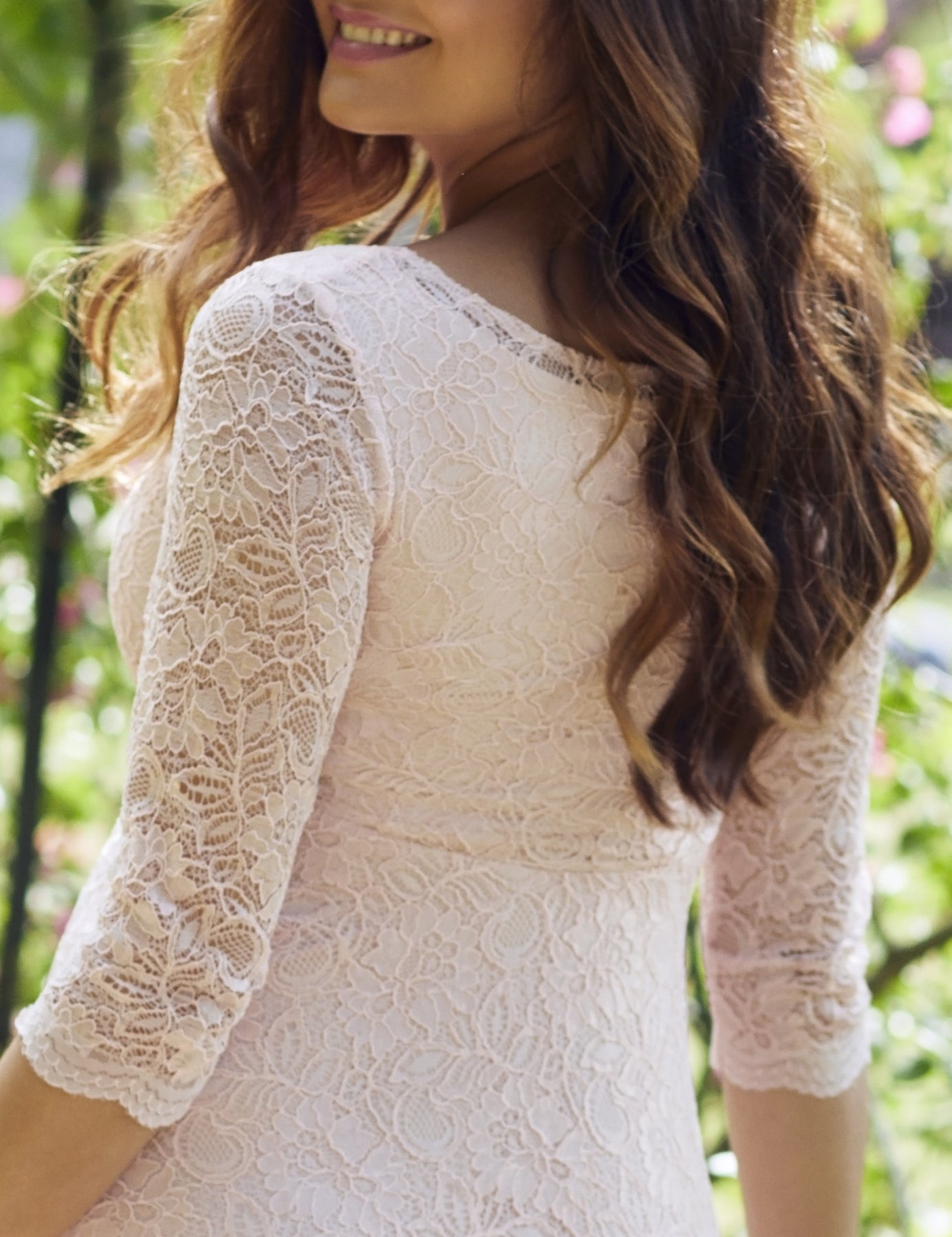 Ausgestattet mit super schönen Details, wie dem sanften, gedoppelten Ausschnitt, der schmeichelnden 3/4-Ärmel, der zarten, elastischen Spitze, dem schwingenden Rock, der eine traumhafte Taille zaubert, sowie der passenden Schärpe, im Kauf nicht inbegriffen, machen das Kleid zu einem traumhaften Outfit ob für die eigene Hochzeit oder als Gast. So schön!!