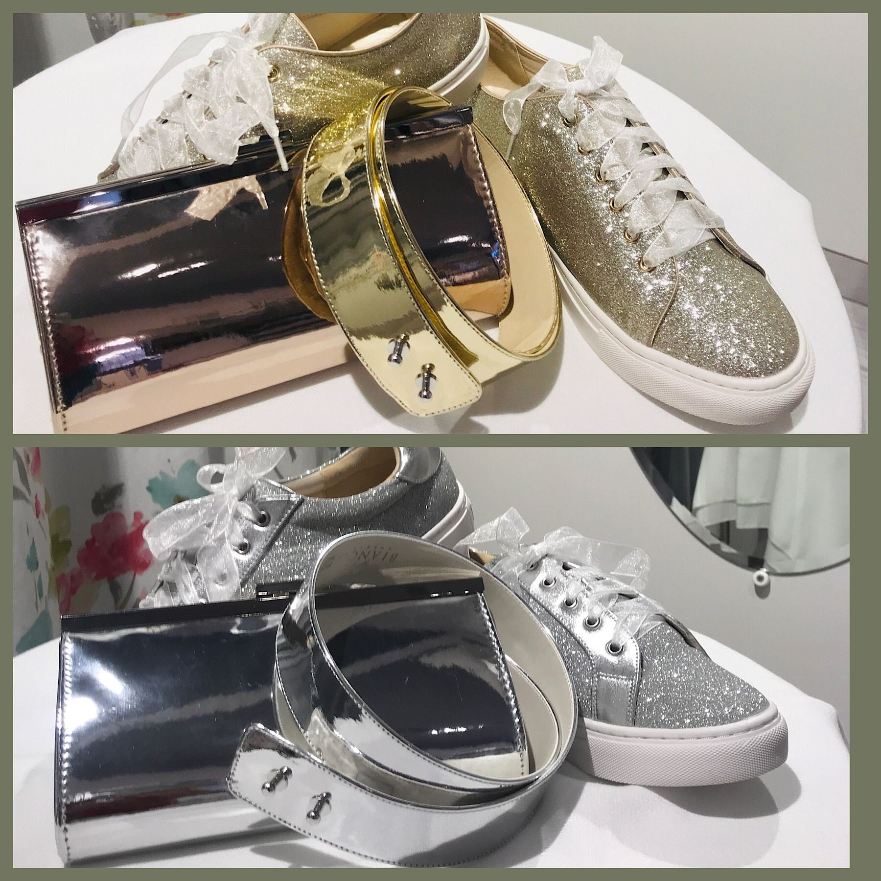 Schicker, total angesagter, schlichter, goldfarbener Gürtel + passende Clutch ... so cool, auch beides in silber zu haben