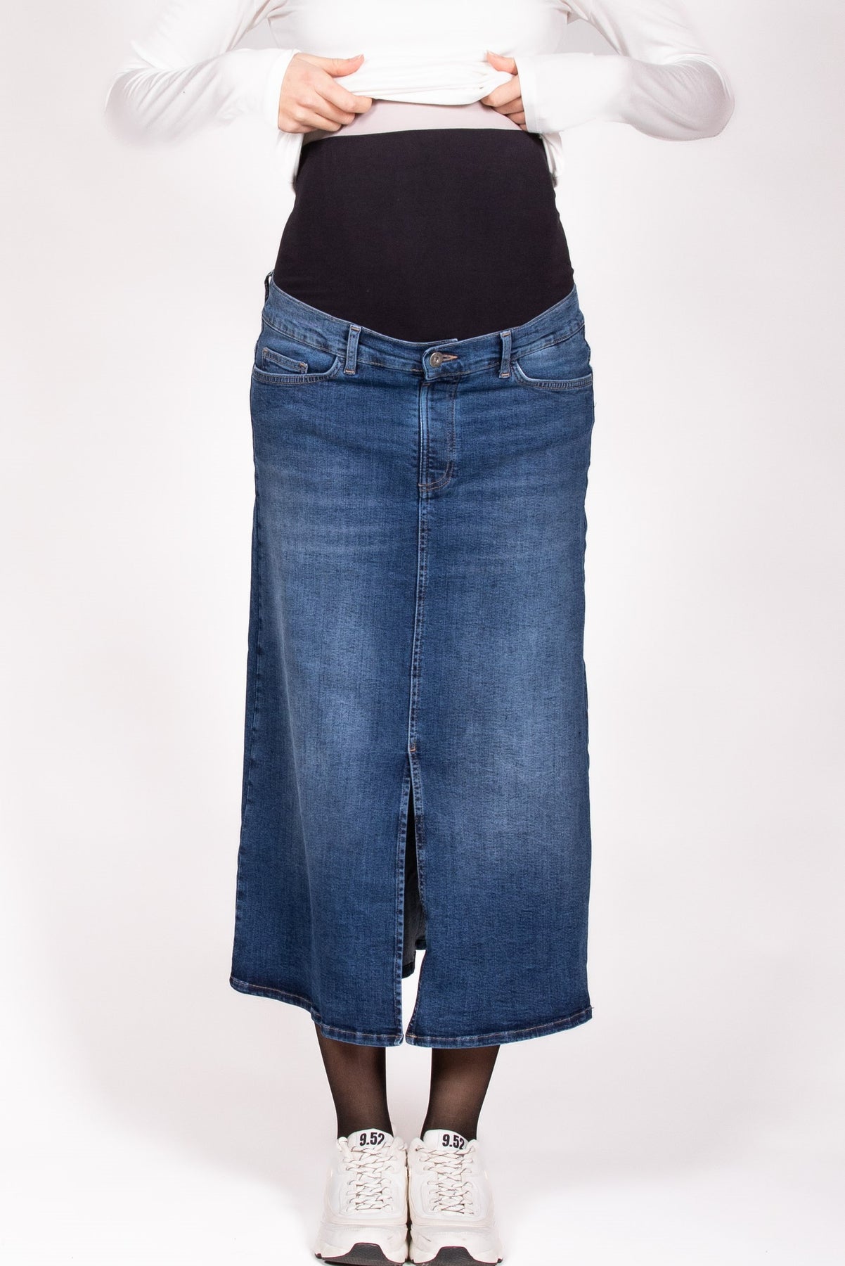 Schwangerschafts-Jeansrock, so lässig und cool! Mit elastischem Bauchband und innenliegender Weitenverstellung, der Umstandsrovk hat einen hohen Stretchanteil und ist dadurch sehr angenehm zu tragen, mit raffiniertem Schlitz vorne!!