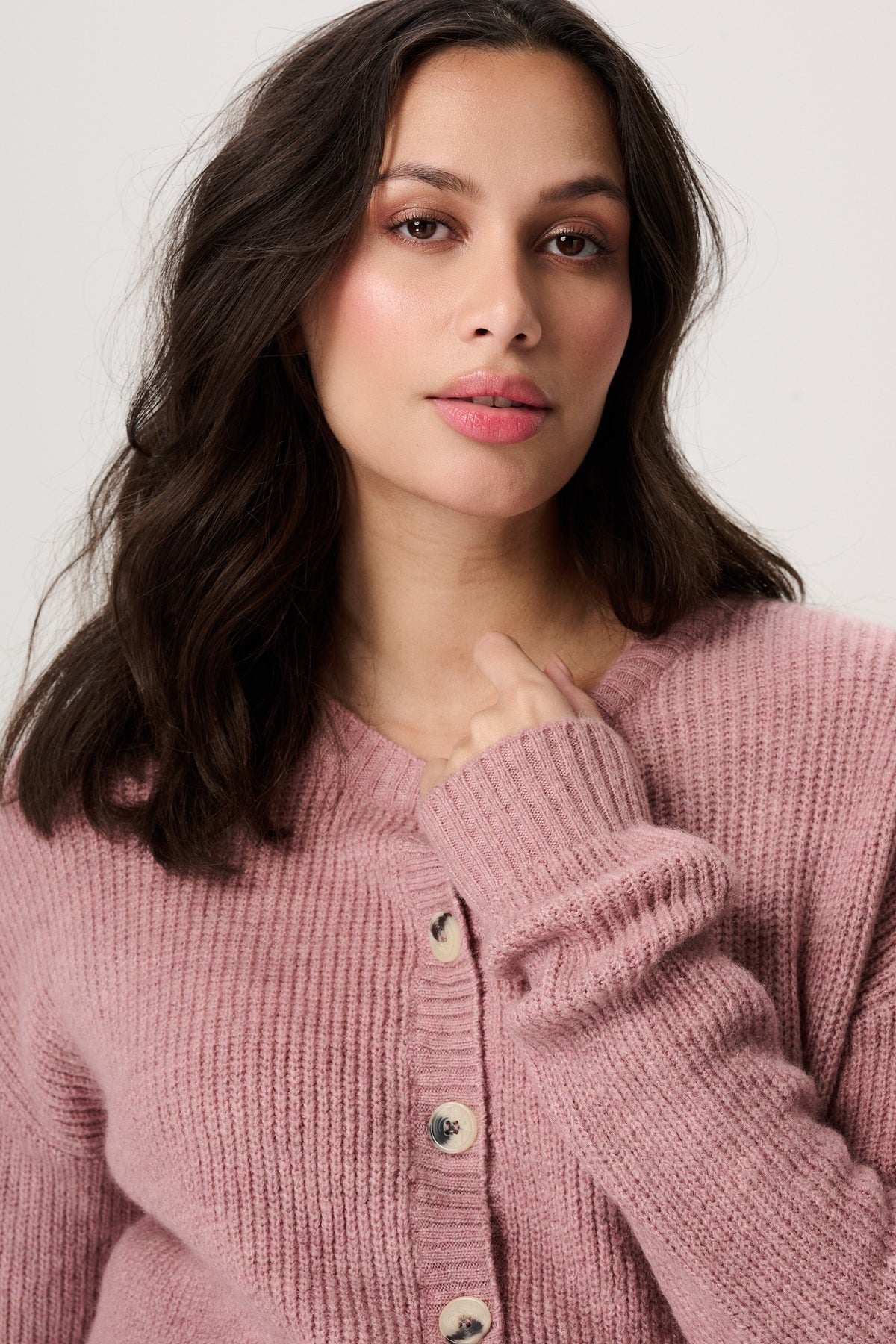 Diese coole Umstandsstrickjacke RISOR überzeugt mit einem bequemen Rundhalsausschnitt und einer modischen Knopfleiste, die sich zum Stillen einfach öffnen lässt. Perfekt für werdende Mütter, die modisch angezogen sein wollen und Funktionalität in einem Kleidungsstück suchen. Leicht kombinierbar und ideal für jede Jahreszeit.