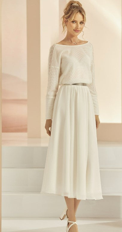 wunderhübsches Oberteil für die Braut - aus feiner Spitze, deren Optik wie kleine Perlen wirkt - mit kurzem Arm, im Rücken mit stoffbezogenen Knöpfen durchgehend zu schließen - das perfekte Darüber über ein schlichtes Kleid oder zu unserem super-schönen Umstandsbrautrock Kirsten aus Chiffon.