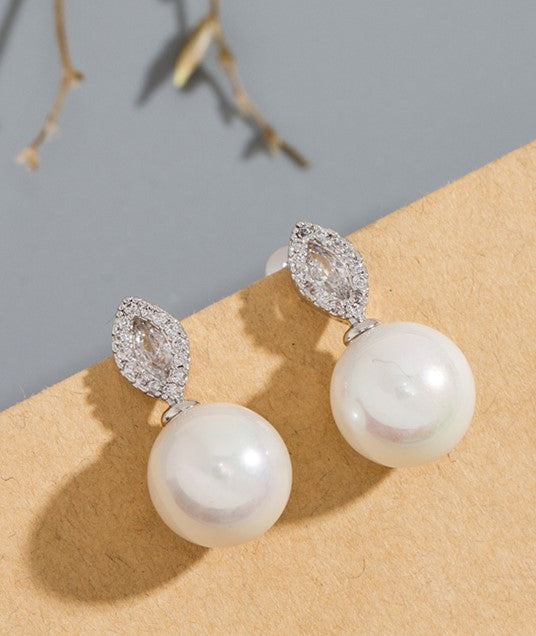 Ein herrlicher, nickelfrei Ohrstecker verziert mit Cubic Zirconia und Perlen.