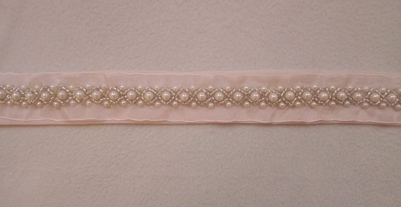 Dezenter Schmuckgürtel aus feinem Chiffonband mit aufgenähten Perlen und Schmuckstäbchen! Zu vielen Kleidern kombinierbar!!!