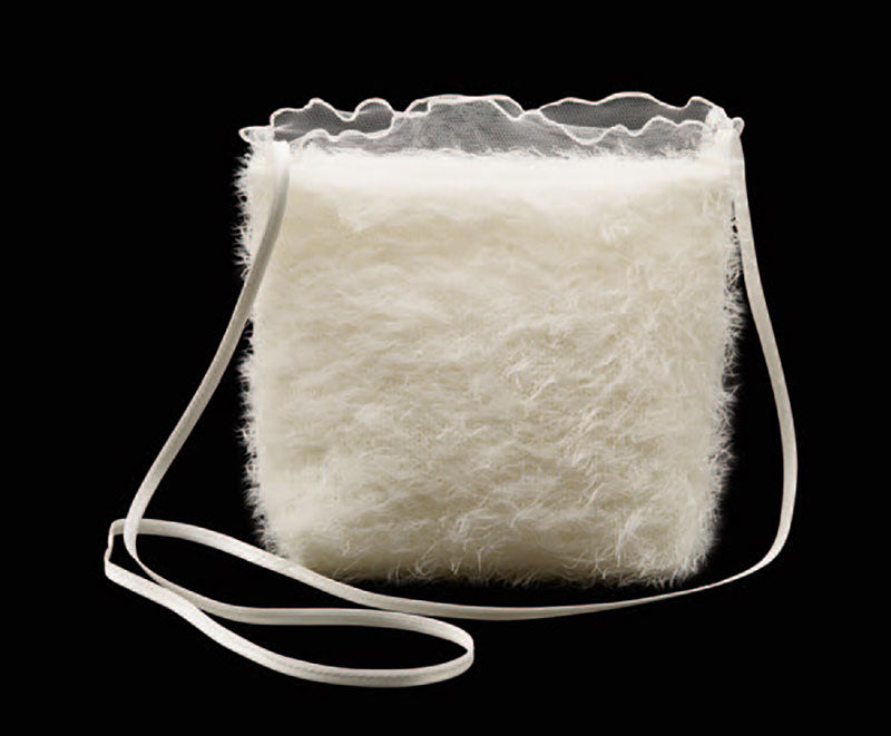 ... unsere witzige Handtasche aus weichem Strukturgarn, leicht und anschmiegsam, in den beiden wichtigen Farben ivory und altrosé, mit Klettverschluß zu schließen und langem Schulterband.