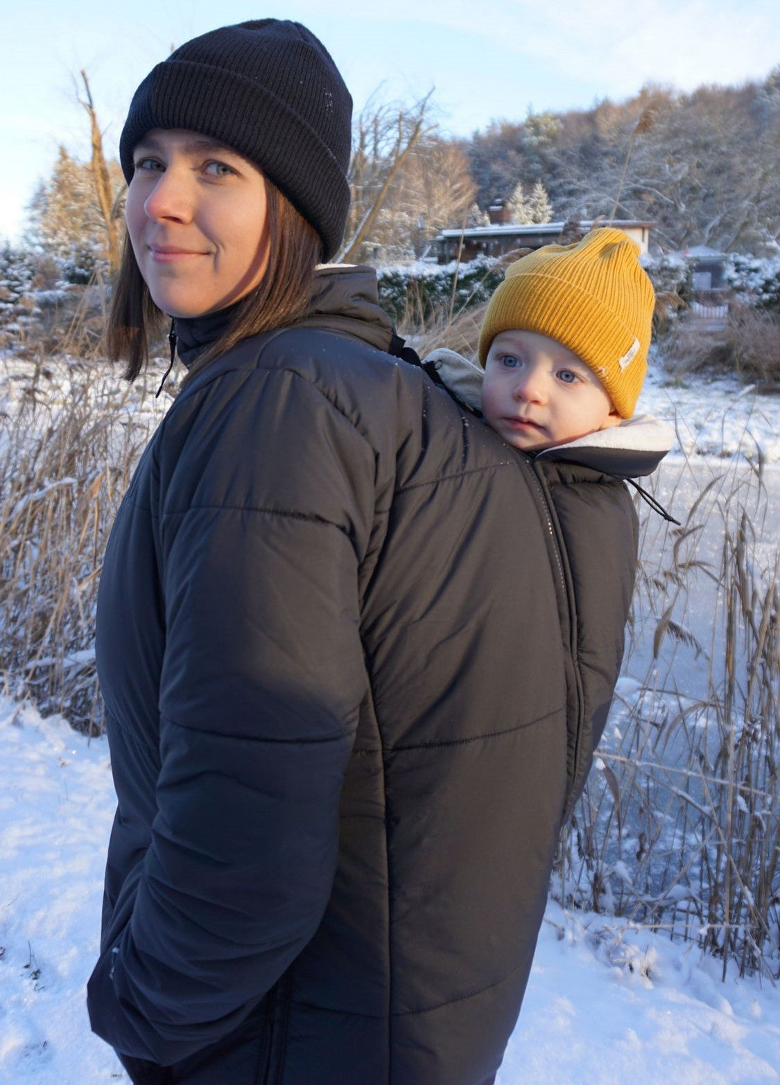 Kuschelig und superwarm: der Wintermantel in dicker Steppoptik hält Mutter und Baby im Winter zuverlässig warm. Dank dem 4-in-1 Prinzip ist er erweiterbar für die Schwangerschaft und bietet mit dem Babyeinsatz Platz für ein getragenes Baby, und zwar sowohl vorn, als auch auf dem Rücken. Ohne den Einsatz kann man ihn wunderbar als normalen Mantel tragen. Zwei verschließbare Taschen, die dick gefütterte Kapuze mit Tunnelzug (abnehmbar zum Rückentragen), warme Ärmelbündchen und ein kuscheliges Fleece im Rücken und der Kapuze sowie im Babyeinsatz halten Mutter und Kind wunderbar warm. Vegan und nachhaltig produziert aus recyceltem Polyester und FC-freier Imprägnierung gegen Schnee und Regen .