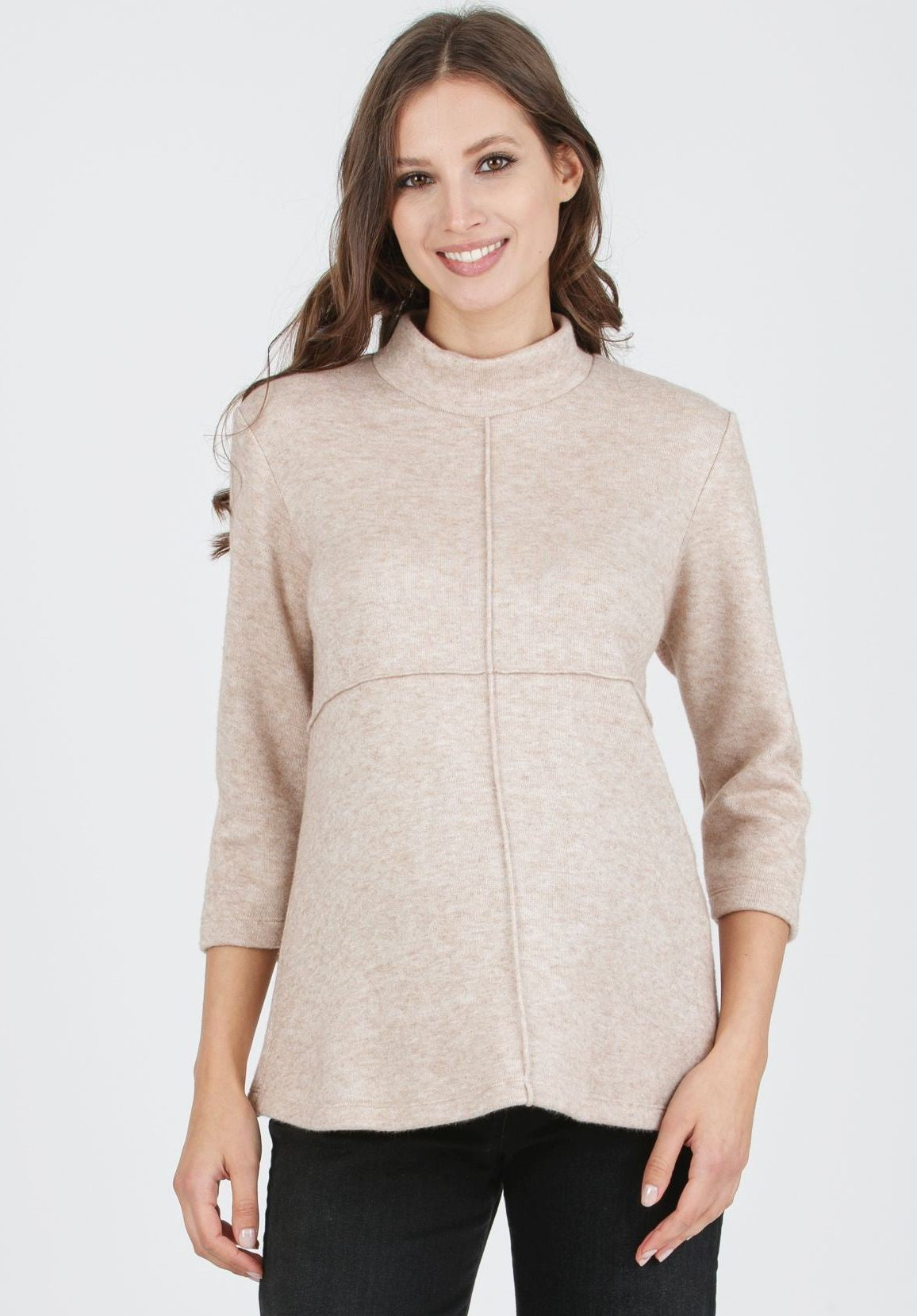 Schicker Umstandspulli aus Strick, mit kleinem Stehkragen, leicht A-förmig geschnitten, so dass er schön über deinen Babybauch fällt. Die tolle Farbe und die optisch aufgesetzten Nähte geben den modischen Akzent. Sehr weich in trageangenehmer Qualität! Ein richtig schöner Winterpullover den du auch nach der Schwangerschaft wunderbar weiter tragen kannst! Diesen kuscheligen Umstandspulli gibt es unter dem Namen ANNA noch in einem schönen Sandton und hellblau in unserem Shop.